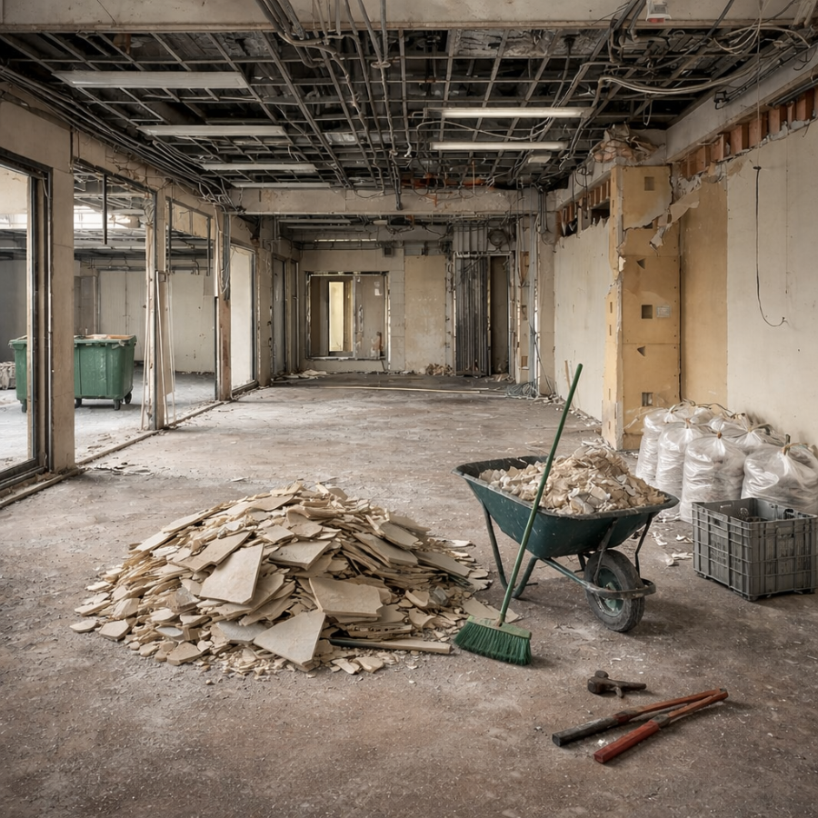 店舗・事務所の原状回復やスケルトン工事に対応。営業スケジュールや近隣環境に配慮し、短工期かつ丁寧な分別解体を実施します。部分解体のご相談も可能です。