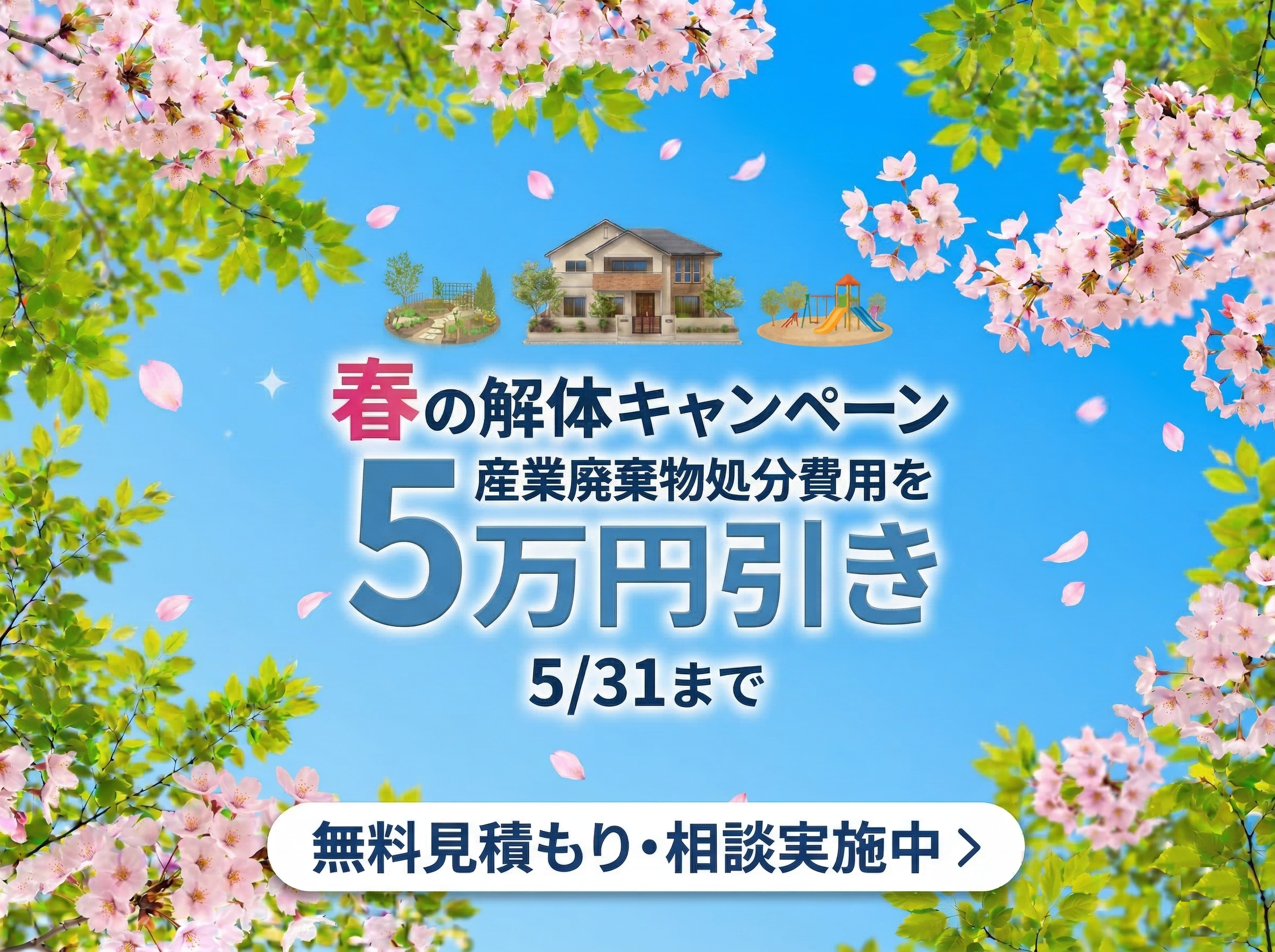 春のキャンペーン割引(産廃処理5万円引き)との併用も可能です。