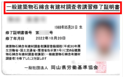 日本クレストでも、社員が石綿作業に関する講習を修了するなど、適時対応を行っています。