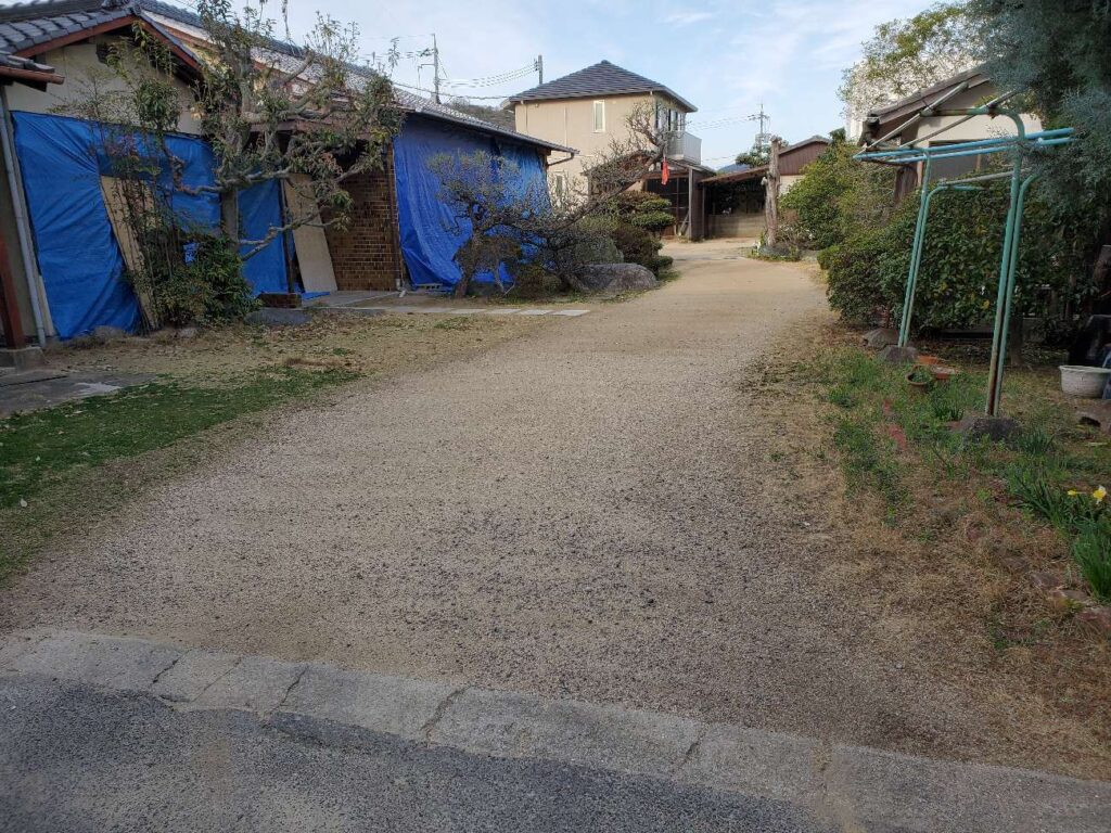 外観からも、建物がスケルトン状態になっていることが確認できます。敷地内も整地され、次の工程に向けた準備が整いました。