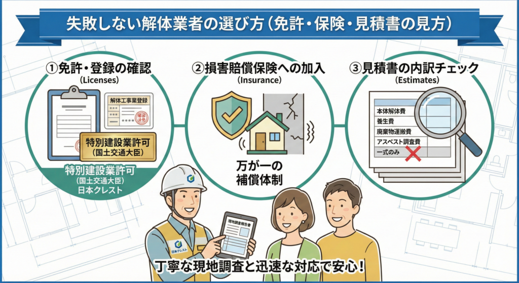 失敗しない解体業者の選び方(免許・保険・見積書の見方)