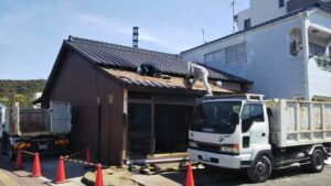 この工事では、アスベストを含む建材を完全に撤去するため、専門の保護装備を着用した作業員が徹底した除去作業を行いました。施工現場は厳重に管理し、作業区域をしっかり密閉することで外部への影響を防止しています。