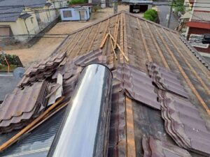 屋根瓦の手作業による撤去